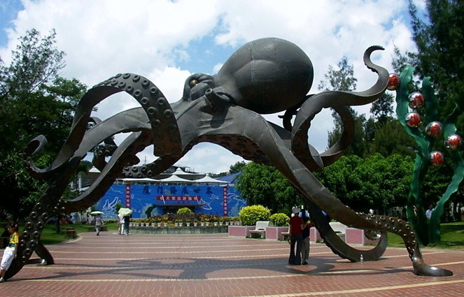 廈門海底世界占地17.5公頃,總建筑面積7500平方米。它是由新加坡華僑與鼓浪嶼風景區建設開發公司合作興建的,總投資1000萬美元。這座花壇簇擁的海藍色水晶宮建筑,第一期工程先后建成了海洋館、企鵝和淡水魚館。其入口處在主體建筑外60米地方有一個設計獨特、別具一格、張牙舞爪的章魚雕,高6米、跨徑11.2米。它是廈門海底世界的標志性建筑,也是游客們首先拍照留念的景觀。