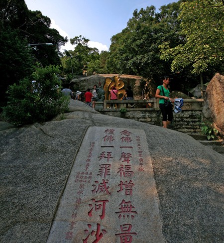 南普陀寺是廈門著名古剎,居于鷺島名山五老峰前,背依秀奇群峰,面臨碧澄海港,風(fēng)景絕佳。始建于唐代,為閩南佛教勝地之一。寺內(nèi)天王殿、大雄寶殿、大悲殿建筑精美,雄偉宏麗,各殿供奉彌勒、三世尊佛等。藏經(jīng)閣珍藏佛教文物豐富多彩,有經(jīng)典、佛像、宋代銅鐘、古書等,明萬歷年間血書《妙法蓮花經(jīng)》和何朝宗名作白瓷觀音等最為名貴。寺宇周圍保留眾多題刻,著名的有明萬歷陳第、沈有容題名石刻和清乾隆御制碑。寺后崖壁“佛”字石刻,高一丈四尺,寬一丈。寺后五峰屏立,松竹翠郁,巖壑幽美,號(hào)“五老凌霄”,是廈門大八景之一。