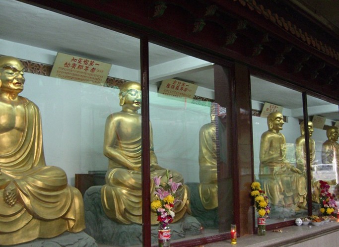 藏經(jīng)閣是中軸線上的最高層建筑,為歇山重檐式雙層樓閣,一層為法堂,是僧人講經(jīng)說法的地方,二層為玉佛 殿,內(nèi)供28尊緬甸玉佛,并藏有數(shù)萬卷古今中外的佛典經(jīng)書及一些珍貴的文物。