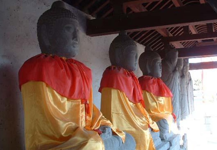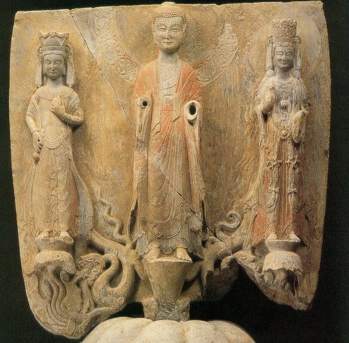 1962年,在石佛前田中發現石質佛座1塊,龕長36厘米,寬35厘米,厚11厘米,刻“大齊天統元年歲次丁亥四月一日辛丑朔比丘?曇進兄弟二人敬造”。天統元年為公元565年。1977年又在寺院舊址中出土1塊高浮雕一佛二菩薩造像碑,系青石質,呈蓮瓣形,頂端左右雕有飛天6個,中間石佛像高65厘米,其兩側菩薩像各高47厘米。造像屬唐代風格,當屬寺內舊物,現存于臨淄區文物管理所內。1984年7月公布為市級重點文物保護單位。石佛堂北魏石佛 在臨淄區城關鎮石佛堂村北側有殘破佛堂3間,系磚、石、木結構,灰瓦覆頂,一門二窗,內飾壁畫,立有石佛4尊。堂室中央置彌勒佛1尊,高1.14米,寬0.45米,厚0.24米,背倚刻有40個佛像的石屏;西間石佛3尊,缺首,雕在一塊蓮瓣狀石屏上,石屏刻有35個佛像,其上端左右雕立式飛天和蟠龍,結構謹嚴,組為一體。