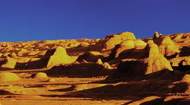 克拉瑪依市北行100公里,在烏爾禾鄉東南三公里,有一處獨特的風蝕地貌,定名為風城,人們習慣稱它為 “魔鬼城”。“魔鬼城”是一片雅丹地貌,面積10平方公里,地面海拔350米左右。