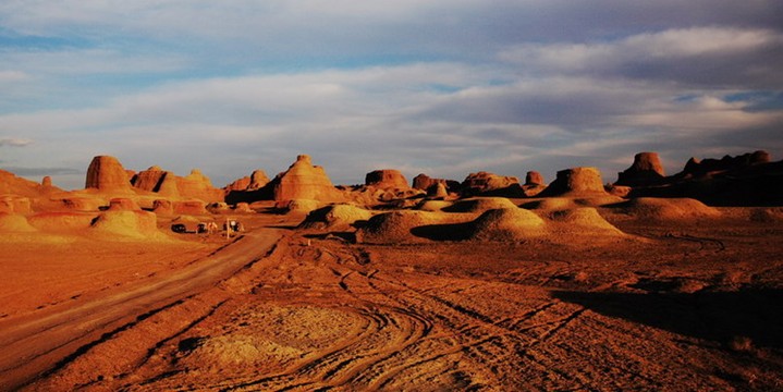 偶有無風時,駐足細觀墩體,皆沙石,亦有風化土隱其背,聚其溝。據考證,一億多年前,這里曾是一個巨大的淡水湖。那時,這里氣候溫暖濕潤,喬木茂密,灌木叢生,濕地水草,構筑出一派綠色的天地。那時劍龍、翼龍等遠古動物在這里繁衍生息。后因地殼運動,隆起而成砂巖、泥板巖陸地,經億萬年的風蝕雨侵,形成今天雅丹地貌的奇異景觀。因而,神而不秘的“魔鬼城”,不僅是一個旅游的好去處,其科研價值則等待著人們進一步認識。