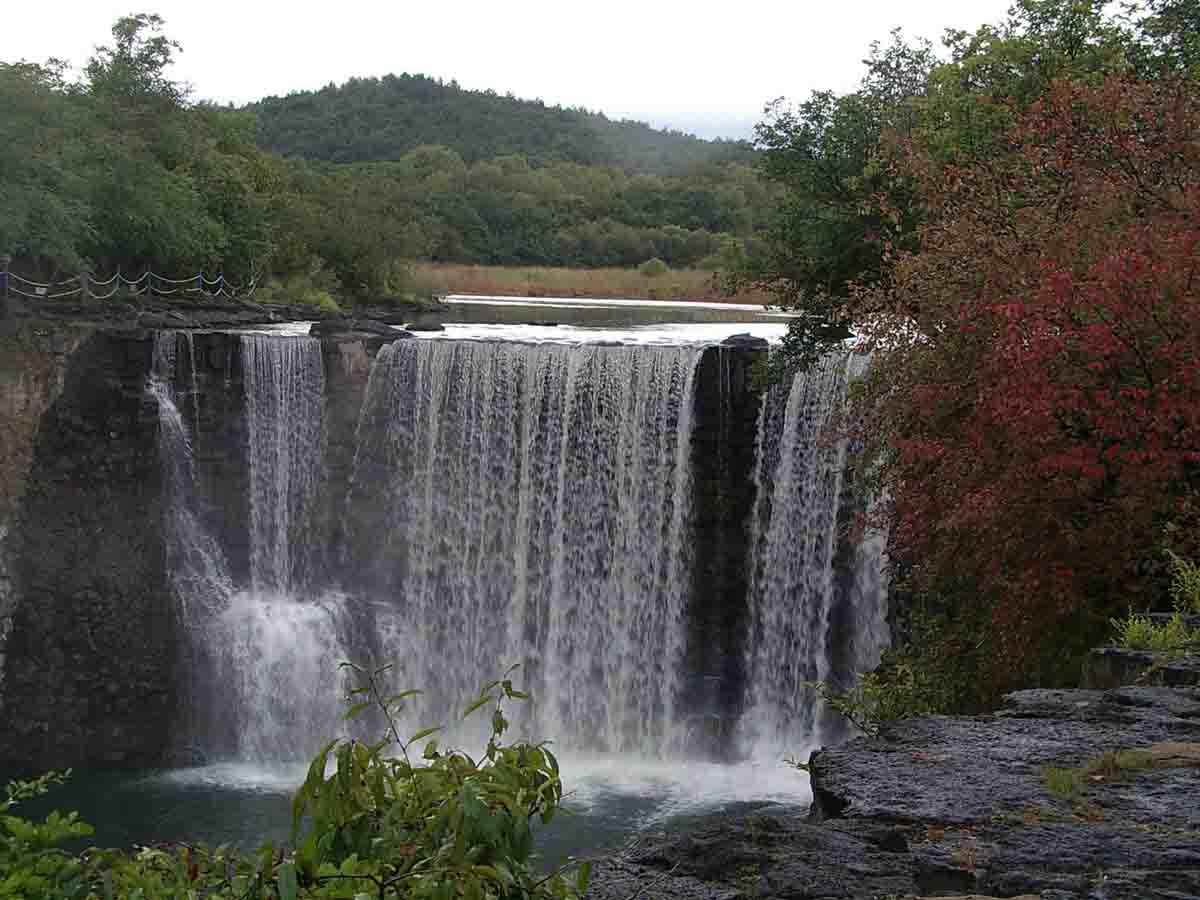 冬季枯水期,瀑布不見了,卻可以觀賞到另一番景致。在熔巖床上,游人可發現許多被常年流水沖擊的熔巖塊因磨蝕而形成的大小深淺不等的溶洞。這些溶洞,猶如人工鑿琢般光滑圓潤,十分別致。