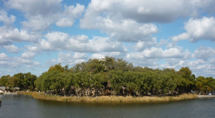 迎面醒目的四個大字“水閣云天”是黑龍江省原省長陳雷同志題寫。主景面積1515平方米,采用現代園林造景手法,建成長廊、連廊、方閣三個部分。水面上二層方閣,54個黑色貼面大理石柱,水閣云天廣場鋪設方石路。版權所有山東聊城聊之旅國際旅行社有限公司,轉載必究!兩旁林陰之下,設有石桌石凳,正門前兩側配有長廊和花池。這座建筑是1980年開工,1981年竣工的。太陽湖當時是全市人民參加義務勞動挖出的人工湖,挖出的土方,一部分用于改造周圍環境,一部分就堆積成了太陽山。