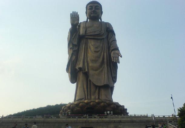 矗立在小靈山南麓的靈山大佛,包括蓮花座在內(nèi)通高為八十八米,相當(dāng)于一幢三十馀層樓房的高度,比“山是一尊佛,佛是一座山”的四川樂山大佛還要高出十七米,是迄今為止我國最高的巨型佛像。如果加上三層座基,總高度達(dá)一百零一點五米。