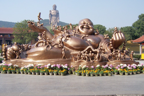 從杏壇廣場往上,攀218級登云道,看六角古井,觀七級浮雕,于大佛基座游覽靈山佛教文化博覽館。博覽館以神州五方五佛、中華四大佛山、藏傳、南傳、漢傳三大佛教語系以及佛教文化藝術(shù)為展覽主線,充分展示博大精深的佛教文化。自博覽館乘電梯而上,游客還可參與“平安抱佛腳”活動,登高望遠(yuǎn),憑欄臨風(fēng),近可觀景區(qū)全景,遠(yuǎn)可觀太湖湖光山色。從大佛足部步行而下,可參觀靈山萬佛殿。靈山萬佛殿供奉著近萬尊靈山大佛之真身小佛像,供游人瞻拜迎請。2000年靈山景區(qū)新增兩處精彩景點。大型青銅浮雕“百子戲彌勒”喜慶吉祥,深受游客喜愛。位于大佛腳下二層的靈山隨喜堂是靈山的又一處綜合展示佛教文化的神圣殿堂,將令您嘆為觀止,并有品種多樣的佛教工藝禮品給您選購。