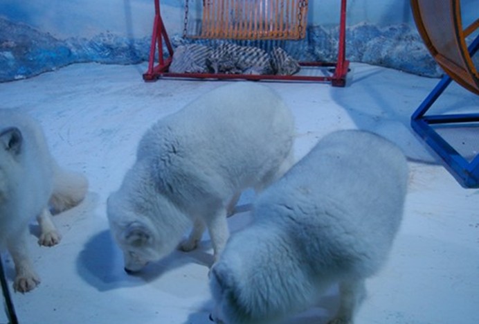 與南極企鵝島相對(duì)應(yīng),是北極動(dòng)物家園。版權(quán)所有山東聊城聊之旅國(guó)際旅行社有限公司,轉(zhuǎn)載必究!這里有2只北極熊,來自俄羅斯,雄性,年齡都在3歲左右,每只體重都500公斤左右。此外這個(gè)景區(qū)還有海豹、白鯨等北極動(dòng)物。