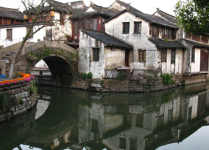 周莊在蘇州管轄的昆山之西南,周莊古稱貞豐里。北宋年間,周迪功朗(官名)在此辟田設莊,于宋元佑元年(1086年)舍田宅200余畝捐于當地全福寺,遂有周莊之稱。而正式定名為周莊鎮,周莊卻是在清康熙初年。周莊位于上海、蘇州之間的江南水鄉腹地。贊美的人說那里是鎮為澤國,四面環水,港汊分歧,湖河聯絡,咫尺往來,皆須舟楫。宛如一顆鑲嵌在淀山湖畔的明珠。近日更因著名畫家陳逸飛將周莊畫入油畫中,在美國鈕約拍賣得了好價錢。人們紛紛要追尋這江南水鄉美景,老外紛至沓來,周莊一時成了旅游熱線。
