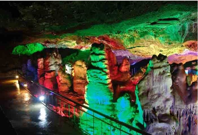 “金龍吐珠”:這一級瀑布有60多米,泉水從山凹頂端噴薄而出,飄逸而下,似一巨幅長長的白緞,半透明中閃出光亮;飛揚的水花,陽光下如飛珠撒玉,五彩繽紛。由于兩股細流像龍的將軍牙,兩岸石壁上形態各異的古木、版權所有山東聊城聊之旅國際旅行社有限公司,轉載必究!藤竹酷似龍須、龍爪……從整體看,倒似山凹處伸出一條活生生的龍頭,不斷地從口中傾吐珍珠寶玉,故人們美其名“金龍吐珠”。