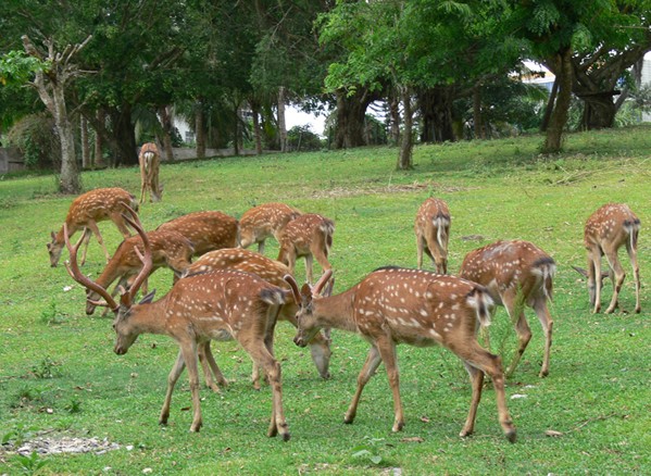 楓木鹿場位于海榆中線公路110公里處,距屯昌縣27公里,是中國南方規(guī)模較大的綜合性養(yǎng)鹿場,占地200多畝。共有700多頭坡鹿、水鹿、馬鹿、梅花鹿、麋鹿和黃鹿生活在這椰林搖翠、芳草如茵的樂土。