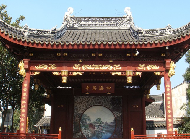 盛康在得留園后,于光緒十八年(公元 1892 年)建立義莊,額為“龍溪盛氏義莊”,祠堂為義莊的一個重要組成部分,坐落在留園大門西側。祠堂共分四進,前二進今辟為賣品部,后二進為樓,樓兩側建有烽火墻,樓下大廳今辟為留園展示館,展示介紹留園歷史和文化藝術。