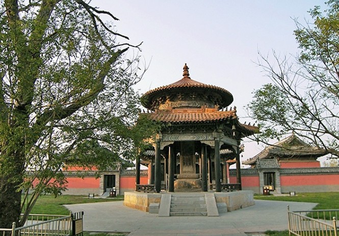 過禪門進入第一道院落,版權所有山東聊城聊之旅國際旅行社有限公司,轉載必究!中心位置是乾隆皇帝下旨建造的御碑亭,平面呈六角形,面積53平方米,十二根朱紅抱柱擎托著六角重檐攢尖頂的傘狀黃色琉璃瓦屋面。因其為皇家"敕"建,黃色瓦飾,形狀如傘,人們又稱之為"皇傘"。碑亭正中聳立著一塊5米高的御碑,碑帽的正面鐫刻"圣旨"二字,碑身正面刻有圣旨全文,主要內容記敘了康熙、雍正皇帝建廟的原由和修建的經過。碑身的背面刻有乾隆22年第二次下江南時,第一次下榻此處所題寫的御筆詩文:"皇考勤民瘼,龍祠建皂河,層甍臨聳壩,峻宇鎮回渦,毖祀精誠達,安瀾永佑歌,彭城將往閱,宿頓此經過,捍御方多事,平成竟若何,所希神貺顯,沙刷輯洪波。"碑身、碑帽的兩面分別鐫刻有乾隆27年、30年、45年、49年下榻此處所題寫的御筆詩文。碑座的赑屃獸,卷縮蹲臥,堅實有力。碑帽上緣和碑身四周精雕細刻著生動傳神的五爪巨龍,流云裊裊,瑞氣千祥,造型精致。整塊御碑刻滿了乾隆皇帝的圣旨和詩文,飄逸灑脫,端正秀氣,國內極為罕見,文物價值甚高。尤其是御碑亭的設計,造型大方,凝重端莊,內外施柱,黃瓦紅飾,充分顯示了皇家建筑的特點、風格以及獨有的高貴氣質。特別是"皇傘"的攢尖頂,下端為倒的荷盆,中間六角圓柱上精刻著形象各異的十八羅漢像,頂端放置著象征皇帝至高無上的夜明寶珠,使整個御碑亭在第一進院落中耀眼奪目,金碧輝煌。