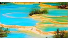 九寨溝是白水溝上游白河的支溝,以有九個藏族村寨(所以又稱何藥九寨)而得名。黃龍風景區位于四川省阿壩藏族羌族自治州松潘縣境內,由黃龍本部和牟尼溝兩部分組成。主景區黃龍溝位于岷山主峰雪寶頂下,以彩池、雪山、峽谷、森林“四絕”著稱于世,是中國唯一的保護完好的高原濕地。“人間仙境”、“童話世界”是形容九寨與黃龍最合適詞匯。“九寨歸來不看水”,水是九寨溝的精靈,湖、泉、瀑、灘連綴一體,飛動與靜謐結合,剛烈與溫柔相濟。 “人間瑤池”黃龍溝位于松潘縣東約35千米處,是玉翠山中一條南北向的溝谷,長約7.5公里。與九寨溝一山之隔,但因雪山阻隔,需經公路繞行100公里方可到達。這條溝的奇妙之處是溝底的巖石,晶瑩光滑,類似石灰巖溶洞中的鐘乳石,巖石跌宕起伏,順著山溝,曲折蜿蜒,猶如一條黃龍盤旋而上。黃龍奇異的景色,使它擁有“黃龍天下絕”的美稱。