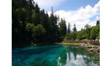 九寨溝的活水泉又異常潔凈,加之梯形狀的湖泊層層過濾,其水色愈加透明,能見度高達20米。翠海、疊瀑、彩林、雪峰、藏情,被譽為九寨溝“五絕”。水乳交融,美不勝收。現代肖草《九寨溝》詩:“放眼層林彩池漣,魚游云頭鳥語歡;飛瀑灑落拂面來,九寨山水揚海天”給予真實詮釋。