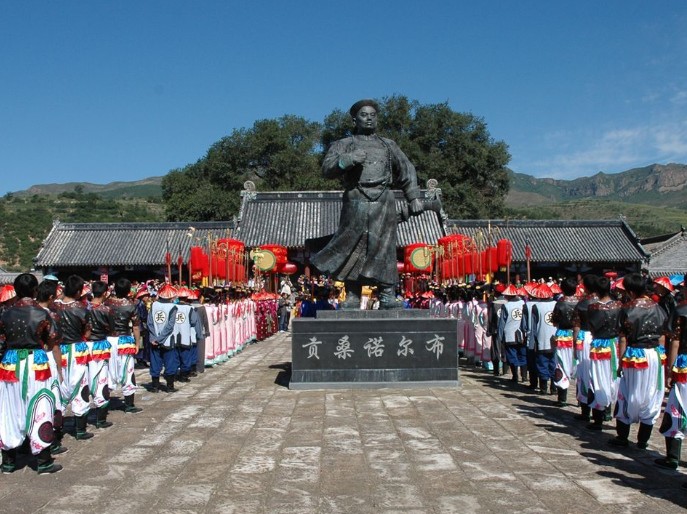 據(jù)史料記載,一代天驕成吉思汗重臣者勒蔑,是喀喇沁蒙古部的遠(yuǎn)祖。成吉思汗因其功勛卓著,將女兒花蔭公主下嫁給者勒蔑之子吉伯格,從而享有“塔布囊”(漢意“駙馬”)之稱號。至后金時,者勒蔑第十四代孫蘇布地以足智多謀、英勇善戰(zhàn)而名震漠南。順治七年(1650年)蘇布地之子晉貝勒,版權(quán)所有山東聊城聊之旅國際旅行社有限公司,轉(zhuǎn)載必究!康熙七年(1668年)第三任札薩克班達(dá)爾沙晉多羅杜梭郡王。乾隆四十八年(1783年)第八任札薩克啦特納錫第晉親王品級。康熙三十一年(1692年),康熙皇帝第五女兒和碩端靜公主下嫁第五任札薩克噶勒藏;第十三代王旺都特那木濟(jì)勒,娶皇家禮親王之妹為福晉;第十四代王貢桑諾爾布娶皇家肅親王之妹為福晉。滿蒙聯(lián)姻使喀喇沁王與清廷及皇家關(guān)系更為密切。王府建成后三百多年間,一直是歷代郡王、親王的府邸。