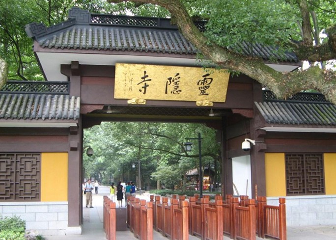 北宋時,有人品第江南諸寺,氣象恢宏的靈隱寺被列為禪院五山之首。靈隱寺確實深得"隱"字的意趣,整座雄偉寺宇就深隱在西湖群峰密林清泉的一片濃綠之中。寺前有冷泉、飛來峰諸勝。