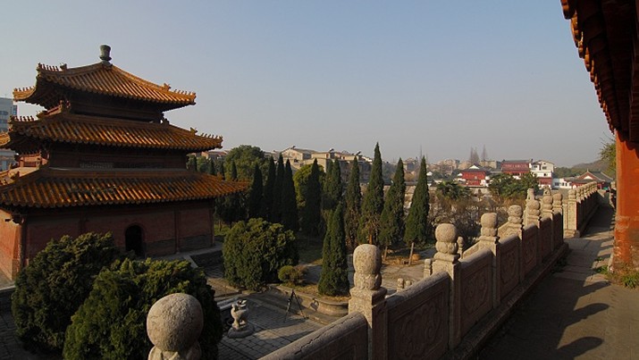 玄妙觀(guān)位于荊北路中段,其名體現(xiàn)了道家玄學(xué)思想的精髓。該觀(guān)始建于唐代,后毀于兵燹,現(xiàn)存建筑為明萬(wàn)歷十二年(公元1584年)重建,主建筑玉皇閣三重飛檐,狀似塔形,屋頂有一青銅蓮花座,猶如盛開(kāi)的金蓮,與屋頂閃爍的琉璃瓦融為一體,分外耀眼。觀(guān)后6米高臺(tái)之上建有三天門(mén)和玄武閣,均為重檐歇山頂,是為明清重建之佐證。版權(quán)所有山東聊城聊之旅國(guó)際旅行社有限公司,轉(zhuǎn)載必究!玉皇閣右側(cè)方立有一高大的石碑“九老仙都宮記”碑。此碑立于元順帝至正三年(公元1334年),是江漢平原所能見(jiàn)到的最早的碑刻,碑文記述當(dāng)時(shí)的玄妙觀(guān)主持道人唐洞云被元順帝封為八仙后的之第九仙。碑文為元代著名學(xué)士歐陽(yáng)元撰寫(xiě)、元代書(shū)法大家危素手書(shū),其史料及藝術(shù)值均彌足珍貴。