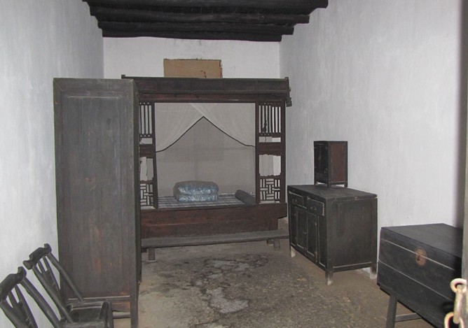 在堂屋的右邊是一間小臥室,是董必武當年出生的地方,也是1910年董必武與黃俊貞同志結婚的房間。房間內很簡樸,只有一張床和兩口木箱。在這間臥室,董必武的母親生下了他們姐弟四個,兩個姐姐,一個弟弟——董覺生。