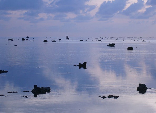 中沙大環(huán)礁是南海諸島中最大的環(huán)礁,全為海水淹沒,水深一般9~26米。大環(huán)礁東側(cè)是深而大的地殼斷裂帶,陸殼和洋殼接觸處以51°~58°陡坡下降到4000米海盆上。大環(huán)礁南部與南沙群島的雙子群礁間海域,是南海最深處(-5559米),熱流量、布格重力和磁力都異常偏高,可能與陸塊漂移有關(guān)。中沙群島中的暗沙邊緣突起、彼此間的斷塊又不相聯(lián),因此造成許多獨立個體。斷缺部分成為出入□湖的天然水道。□湖內(nèi)亦散布有暗沙,其中以漫步暗沙最淺,僅9米。
