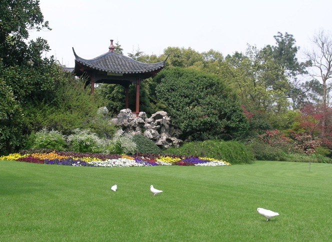 東面,綠樹婆娑,遙接湖波堤痕;南面,南屏山蔥蘢山色被“借”入公園內,密林濃陰后,一灣綠水縈繞,拱橋飛架,港汊連通了西里湖和小南湖,全園水景因此更顯靈動,沿水竹樹繁茂,禽喧枝頭,版權所有山東聊城聊之旅國際旅行社有限公司,轉載必究!透露著山野風情;北面,大草坪視野開闊,西里湖波光山影引人遐想綿綿。草坪上,間以大喬木為主的樹叢、樹林,既增加了空間林緣線的層次變化,又為游人提供了庇蔭,休憩場所。