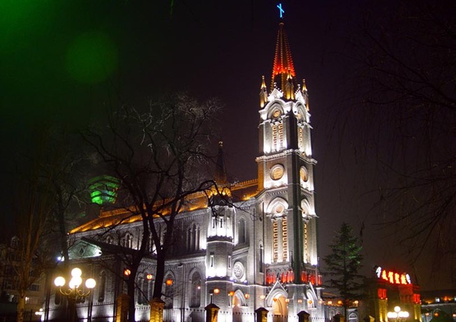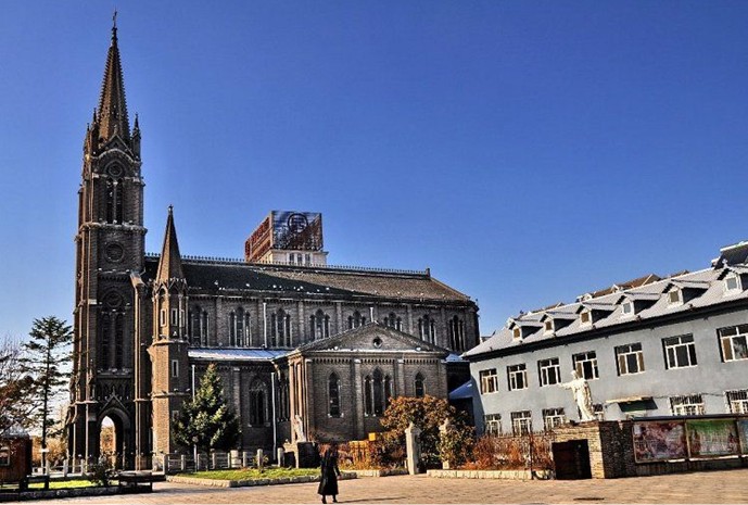 清光緒二十四年(戊戌1898年),法國巴黎天主教外方傳教會神父蘭祿業和古若瑟從長春來吉林傳教。光緒二十八年(壬寅1902年)購買了今天主教堂所占的土地,開始籌建天主教堂。從1917年動工,費時10年,于民國十五年(丙寅1926年)落成。