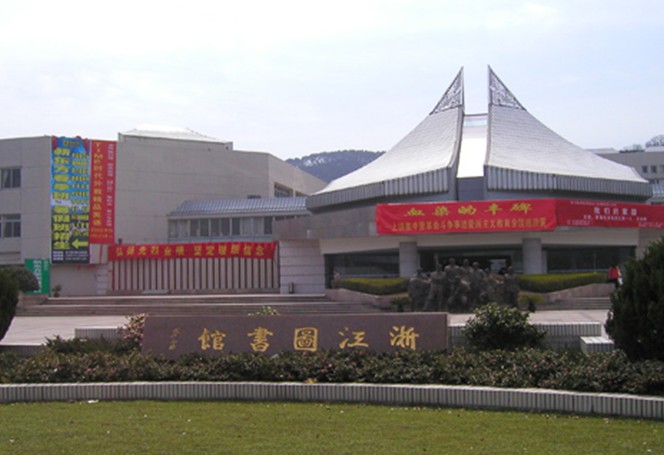 浙江圖書館創辦于1900年,前身為杭州藏書樓,1903年改稱浙江藏書樓,1909年,定名為浙江圖書館?,F館藏文獻約390 萬 冊(件),有舉世聞名的文瀾閣《四庫全書》,唐宋元明清時期的刻本、抄本、稿本;除中文文獻外,英、日、俄、德、法、西 班牙等文種的文獻均有一定的收藏。1998年落成的新館坐落于杭州黃龍洞風景區旁,用地面積近3公頃,建筑面積30800平方米,座席1700余個,可藏文獻450萬冊(件),是一座現代化的面向21 世紀的圖書館。新館連同原杭州孤山路館舍、杭州大學路館舍及湖州市南潯區嘉業藏書樓共同組成新的浙江圖書館,為全省人民服務,為社會主義現代化建設服務。