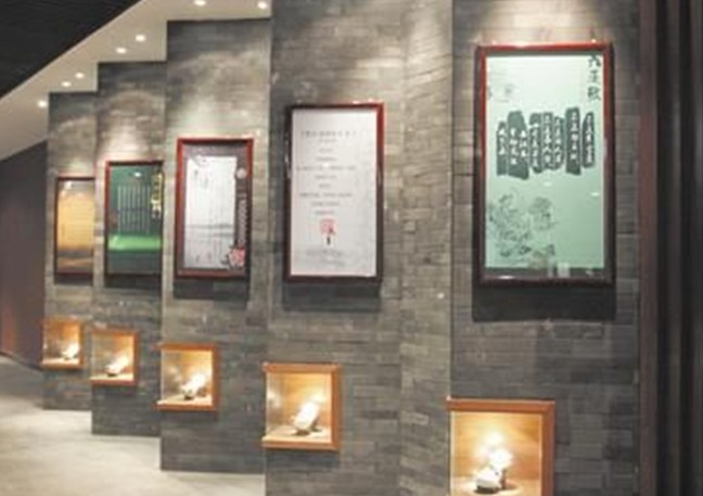 有的展廳設開放陳列區(qū)。茶萃廳陳列了綠茶、紅茶、烏龍茶、白茶、黃茶、黑茶六大茶類及再加工茶等共三百余個茶樣實物,被分門別類地安放在圓柱狀茶樹形臺面上,同時配有相應按鈕。只要觀眾戴上耳機,點擊標本旁的按鈕,就會有一個娓娓動聽的聲音介紹相關的茶葉知識。同時在開放區(qū)還陳列著各種緊壓茶,有金瓜茶、筍殼茶、七子餅茶、方磚茶、茯磚茶等等,小的直徑不過一、二厘米,大的直徑竟超過一米。只要觀眾有興趣,就可以用手去觸摸,甚至可以用嗅覺去感受它的香味。