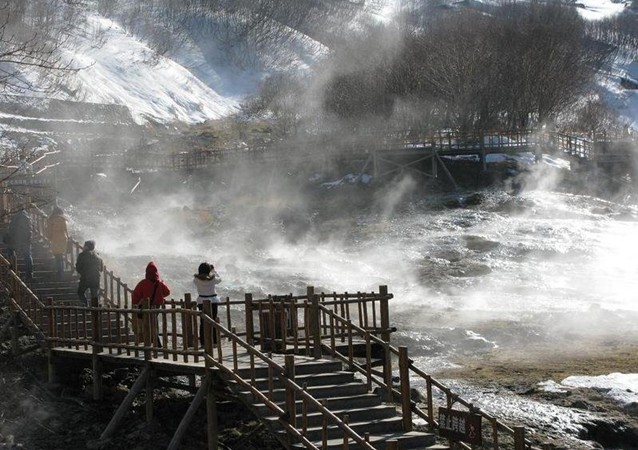 近幾年來,長白山冬季冰雪旅游發展很快,而露天溫泉浴是最讓人們眼界大開的項目,泉外冰天雪地、冷風習習,水中熱氣繚繞、笑聲陣陣,一冷一熱對比分明,真是人生難得的奇妙經歷。