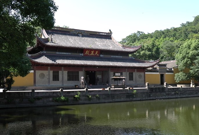 阿育王寺位于浙江省寧波市鄞州區的阿育王山,1983年,被國務院確定為漢族地區佛教全國重點寺院。創建于西晉太康三年(282年),距今已有一千七百多年的歷史。阿育王寺聞名中外,不僅因為山明水秀,殿宇巍峨,更由于它有一座舉世矚目的舍利寶塔?,F存主體建筑為清代。占地面積12.41萬平方米。坐北朝南。中軸線由南而北依次為山門、天王殿、大雄寶殿、舍利殿、法堂(樓上藏經樓)。東、西兩側為廂房及附屬建筑。天王殿七間,通面寬30.36米,通進深18.20米。三大殿均為重檐歇山頂,抬梁式結構,舍利殿屋頂蓋金黃琉璃瓦,內有舍利塔。寺內有二塔,一塔建于山上,俗稱上塔,一塔建于山下,俗稱下塔,上塔已殘。下塔建于元至正二十五年(1365年),磚木結構,仿樓閣式,六面七層,高約36米。寺內另存有唐、宋碑刻,版權所有山東聊城聊之旅國際旅行社有限公司,轉載必究!唐石雕造像等,并設有宗教文物陳列室。1980年重修。