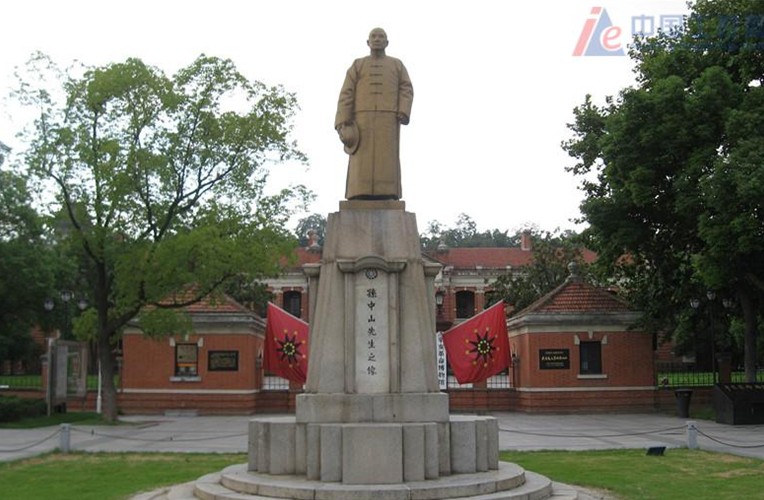 大樓后方也是一座二層樓房。兩側各有一排紅色平房。正前方出口處裝有鐵柵大門,大門兩側為門房,由上半部裝有鐵柵的紅色矮墻自門房兩側平伸,與左右平房連接,圍成方形院落。舊址面對閱馬場,院門外正前方立有孫中山銅像,儀表莊嚴安詳。