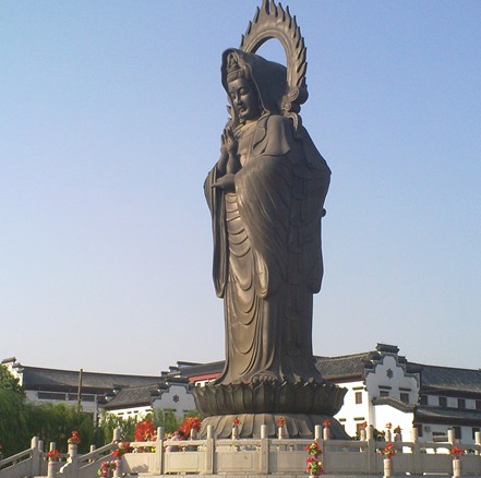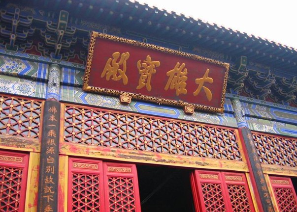 重修。大殿正中供奉著釋迦牟尼坐像,兩側為其弟子阿難和迦葉像。釋迦偏袒左肩,結跏趺坐,莊嚴靜穆。佛像后背是用樟木雕刻而成的“五龍捧圣”的圖案。佛像前還有韋馱、彌勒、地藏像。佛像后是一組海島觀音像。只見海島觀音赤足站立,左右侍立著一龍女和童子,背后是一面高達八尺的泥塑懸崖峭壁,版權所有山東聊城聊之旅國際旅行社有限公司,轉載必究! 足下碧波萬頃,怒濤洶涌。整個塑像向前傾覆。人們仰視上去,只見觀音衣袖似在飄動,正在洶涌的波濤上迎面向你走來,增加了宗教藝術的感染力。佛像前的供桌,是一件不可多得的木刻珍品。供桌高4丈8尺,橫闊1丈2尺,深寬2.5尺,前嵌垂欄,寬1.5尺,高0.6尺,其間分為五格,深畫鏤空。圖案描繪的是唐玄奘取經回長安時,君民夾道歡迎的場面:有唐僧、孫悟空、豬八戒、沙和尚等《西游記》人物,有李世民以下文武百官、侍衛、庶民百姓;有亭院殿墻,車馬山水,幢幡寶蓋,香爐蠟臺等一應俱全。綜觀全圖,繁復活潑,盛況空前。垂欄下沿為五龍云彩,周圍匝繞,以四虎腿支地,生動有力。相傳這一樟木雕刻由十人歷時一年才完成。