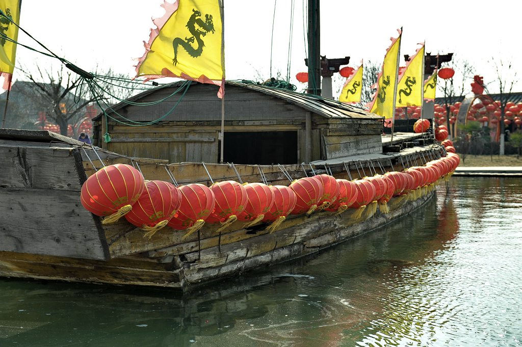 走進大門,繞過一座前有張擇端站像、后有清明上河圖傳奇故事浮雕的影壁,便是公園的主題廣場。版權所有山東聊城聊之旅國際旅行社有限公司,轉載必究!廣場中央的池水中浮動著一只造型古樸的宋代木船,船上桅桿高聳,云帆高掛,象征著宋代繁忙的漕運和高超的造船技術。