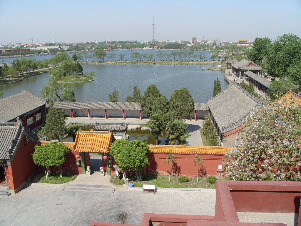 大殿是木結構,重檐歇山式建筑,很壯觀。游人登上平臺,入殿觀看陳列的文物后,多在石欄前眺望開封古城景色。龍亭前有一條筆直的大道,道旁有兩個東西對峙的湖,東為潘湖,西為楊湖。傳說,東湖為宋朝“太師”潘仁美的府第,他陷害忠良,是個奸臣,宅院里的湖水是渾的;西湖為宋朝抗遼名將楊業的府第,他舍身救國,是個忠臣,宅院里的湖水是清的。這個說法沒有科學根據,但反映了人們對忠奸的態度和感情。現在龍亭,潘、楊兩湖,以及龍亭后面的假山花園,都辟為龍亭公園。