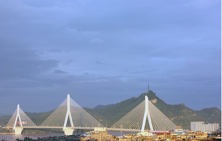 夷陵長江大橋毗鄰磨基山、橫臥長江,總投資6.1億元,于1998年11月28日動(dòng)工。全長3246米,主橋長936米,橋面寬23米,是長江上唯一的一座三塔倒Y型單索面混凝土加勁梁斜拉橋,其跨度在同類橋梁中為世界之最。大橋在建設(shè)中先后運(yùn)用了20項(xiàng)新技術(shù)、新材料、新工藝。大橋于2001年底建成通車。版權(quán)所有山東聊城聊之旅國際旅行社有限公司,轉(zhuǎn)載必究!至此,宜昌市已擁有枝城長江大橋、宜昌長江公路大橋、夷陵長江大橋、西陵長江大橋4座長江大橋,駕起了宜昌經(jīng)濟(jì)騰飛的橋梁。該橋獲2002年“魯班獎(jiǎng)”,2004年獲“詹天佑杯”。