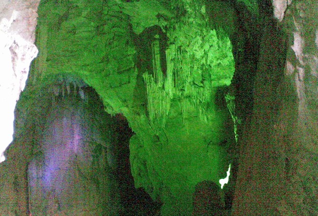 三奇:洞內(nèi)水聲如潮。洞分上下兩層,水流相通,水勢湍流,落差高達50米;
