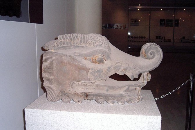 這尊石辟邪1992年12月出土于孟津縣油坊街村。它由整塊石灰巖雕成,長2.97米,寬0.9米,高1.9米,昂首挺胸,張嘴吐舌,威風凜凜,栩栩如生,是不可多得的漢代石雕藝術精品。