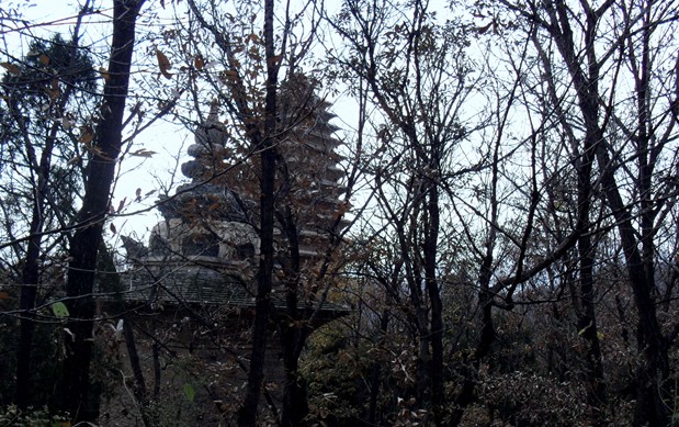 (1)舍利塔:在寺后山坡上,是隋文帝仁泰的E方形舍利塔,高十五層,約四十五米,周長二十八米,壁厚兩米多,全用黃泥砌磚而成,僅外壁涂刷一層石灰……….整個塔身雄偉壯觀. (2)唐塔:隋塔東邊的山坡上有唐代起砌磚塔利一包,令全國各州造金利塔安置舍利相吻合。至于法王寺塔與法王寺一號塔的建造年代的說法不一,因無塔銘,但據(jù)有關(guān)部門專家推測,隋朝始建,到唐朝初期建成的可能較大,因隋仁壽二年始建,到仁壽四年太子廣就篡位,由于政局不穩(wěn)時隔14年就入唐朝,工程浩大,拖十幾年是有可能的。