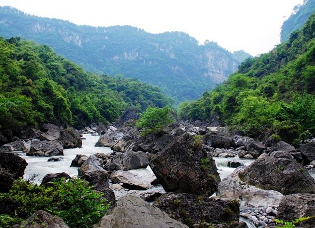 景區(qū)內(nèi)植被茂密,覆蓋度高,植被類(lèi)型較豐富,大部分為亞熱帶原生性較1強(qiáng)的次生林。在河谷兩側(cè)斜坡上有原生性較強(qiáng)的石灰?guī)r山地常綠、落葉闊葉混交林和竹林;在河流周期性淹沒(méi)的河漫灘上以及河流兩岸水邊,有以窄葉蚊母樹(shù)、長(zhǎng)柄竹葉榕、河灘冬青及二翅六道木為優(yōu)勢(shì)的河灘灌叢;在河谷以上低中山黃壤分布地區(qū),有以馬尾松林為優(yōu)勢(shì)的人工針葉林。風(fēng)景區(qū)內(nèi)植物種類(lèi)豐富,有維管束植物414種,分別隸屬275屬116科。其中有不少種類(lèi)的珍稀植物,如國(guó)家一級(jí)重點(diǎn)保護(hù)植物紅豆杉、國(guó)家二級(jí)重點(diǎn)保護(hù)植物櫸樹(shù)、香果樹(shù)、木莢紅豆樹(shù)、三尖杉、銀杏等。