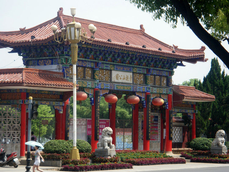 公園景點抱山環(huán)湖設(shè)置,依山立亭,臨水筑榭。南有湛月樓,北毗湛月賓館。 青龍山公園入門東望,屏峰高聳,公園記石勒于上。導(dǎo)游圖,功德碑,繪刻于左右,東行數(shù)十步,即為紅星湖。