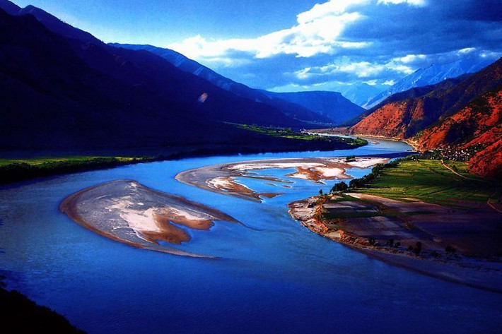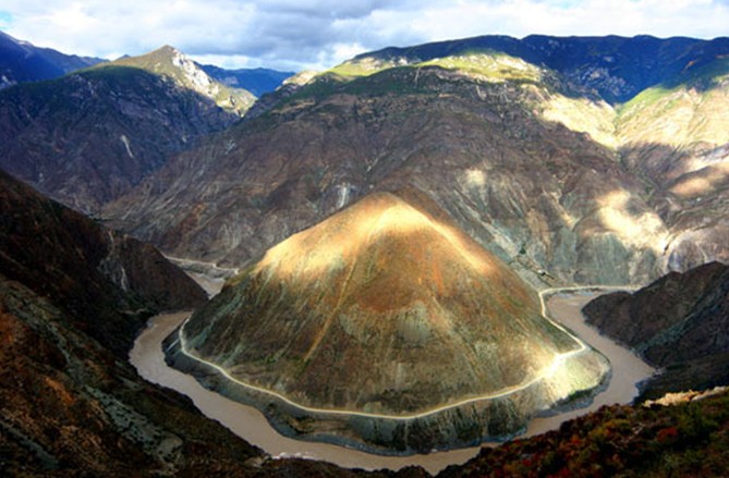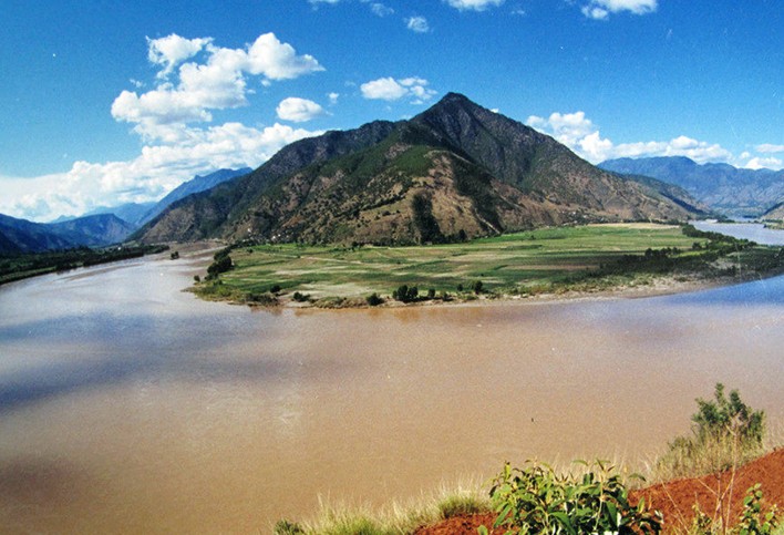 萬里長江從“世界屋脊”青藏高原奔騰而下,巴塘縣城境內進入云南,與瀾滄江、怒江一起在橫斷山脈的高山深谷中穿行。到了中甸縣的沙松碧村,突然來了個100多度的急轉彎,轉向東北,形成了罕見的“V”字形大彎,“江流到此成逆轉,奔入中原壯大觀”,人們稱這天下奇觀為“長江第一灣”。