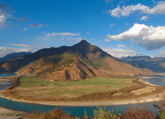 長江第一灣位于香格里拉縣城南部沙松碧村與麗江石鼓鎮之間,海拔1850米,距中甸縣城130公里,有公路直達。