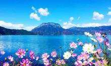 瀘沽湖四季景色相差不大, 版權所有山東聊城聊之旅國際旅行社有限公司,轉載必究!目前正是沿途果樹(蘋果、石榴、梨樹) 開花期,風景不錯,雖然車程比較長,但也不會因此而感覺行程枯燥;進入5、6月之后瀘沽湖四川段的景色會更好一些,可欣賞到翠綠的萬畝草海及情人橋。