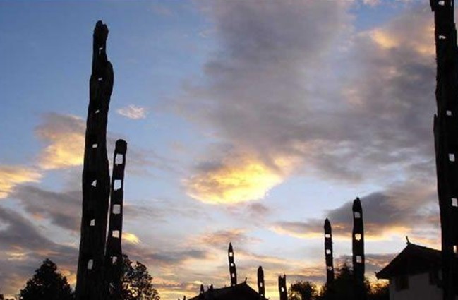 耕牛在古老的村寨內健步而行,叢林般的糧架聳在青龍河畔,構成納西族農耕文化的圖騰標志。