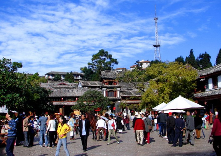 四方街在歷史上就是一個(gè)商品交易場(chǎng)所。麗江古城始建于宋末元初,迄今已有800余年歷史,展現(xiàn)著漢、納西、藏、白等各民族和諧相處的生動(dòng)景觀和多元文化形態(tài)。1997年12月,麗江古城被列入《世界遺產(chǎn)名錄》,填補(bǔ)了中國(guó)世界文化遺產(chǎn)中無(wú)歷史文化名城的空白。在此后的10余年間,麗江古城“用保護(hù)世界遺產(chǎn)帶動(dòng)旅游業(yè),以旅游發(fā)展反哺遺產(chǎn)保護(hù)的實(shí)踐經(jīng)驗(yàn)”被聯(lián)合國(guó)教科文組織認(rèn)為是為困惑的中國(guó)乃至世界城市類型文化遺產(chǎn)保護(hù)面臨的共同難題探索出了全新的路子和經(jīng)驗(yàn)。然而,旅游業(yè)的蓬勃發(fā)展,也造成麗江原住居民大量外遷、傳統(tǒng)民族文化遭受沖擊、生態(tài)環(huán)境正在發(fā)生改變,“過(guò)度開發(fā)”、“太過(guò)商業(yè)化”的質(zhì)疑也不絕于耳。盛名之下的麗江古城在保護(hù)與利用間艱難地、小心翼翼地尋求著平衡。