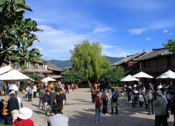 四方街是麗江古城中心,交通四通八達(dá),周圍小巷通幽,據(jù)說(shuō)是明代木氏土司按其印璽形狀而建。這里是茶馬古道上最重要的樞紐站。明清以來(lái)各方商賈云集,各民族文化在這里交匯生息,是麗江經(jīng)濟(jì)文化交流的中心。