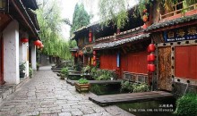 麗江古城四方街幽深的街巷,青石鋪就的道路兩邊,所有的房屋全是磚木結(jié)構(gòu)。門窗欄棟、斗拱飛檐大都雕刻著花鳥蟲魚、飛禽走獸的花紋。這城市本身就是座公園,小橋流水、樹木花朵。耳聞?dòng)竦雁~蕭的悠揚(yáng),或黃鸝棲翠柳的鳴唱;它與中國(guó)古代那種普遍的有城墻的城市不同;除了木王府四周有圍墻外,麗江是中國(guó)唯一不設(shè)防的古城。人們可以從四面八方通過(guò)街道、小路、巷子、田野甚至山上的羊腸小道進(jìn)入這個(gè)城市。麗江是一個(gè)日日夜夜和淙淙流水相約的城市,就像威尼斯那樣。不過(guò)大研鎮(zhèn)的水道,是經(jīng)過(guò)設(shè)計(jì)用人工挖掘的。原始的河流只有一條,就是穿城而過(guò)的中河,從中河又人工開發(fā)出西河和東河,分為三支,像一棵大樹的主干和兩個(gè)支干。從它們又生出無(wú)數(shù)的小渠。居民們甚至可以直接飲用這泉水。四方街是一個(gè)梯形的小廣場(chǎng),建造時(shí)被設(shè)計(jì)得中間稍微凸起,兩邊凹下,猶如一片巨瓦。