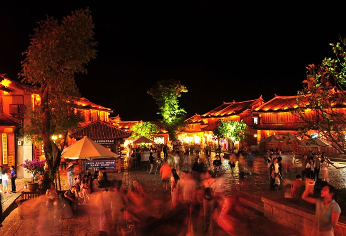 四方街最迷人的是晚上,沿河都是些大大小小的酒吧,茶樓。其中不乏外國(guó)人經(jīng)營(yíng)者。這些酒吧,茶樓門前,大紅燈籠型狀各異,高高的懸掛在每戶人家門前。晚間的四方街就這樣籠罩在溫暖祥和的氣氛中。版權(quán)所有山東聊城聊之旅國(guó)際旅行社有限公司,轉(zhuǎn)載必究!紅燈籠的倒影隨河水飄蕩,約約綽綽。這里是歷代集市中心,每日萬(wàn)頭躦動(dòng),熱鬧非常。從四方街四角延伸出四大主街,直通東南西北四郊,又從主街岔出眾多街巷,如蛛網(wǎng)交錯(cuò),往來(lái)暢通。街道全用五彩石鋪砌,平坦?jié)崈簦绮粨P(yáng)塵,雨不積水。幾乎每條街道一側(cè)都伴有潺潺流水。由此形成以四方街為中心,四周店鋪客棧環(huán)繞,沿街逐層外延的稠密而又開放的格局,古老的集市就這樣孕育了城市最初的形狀,這與中國(guó)傳統(tǒng)的四四方方的井字形街道是不是一樣的。