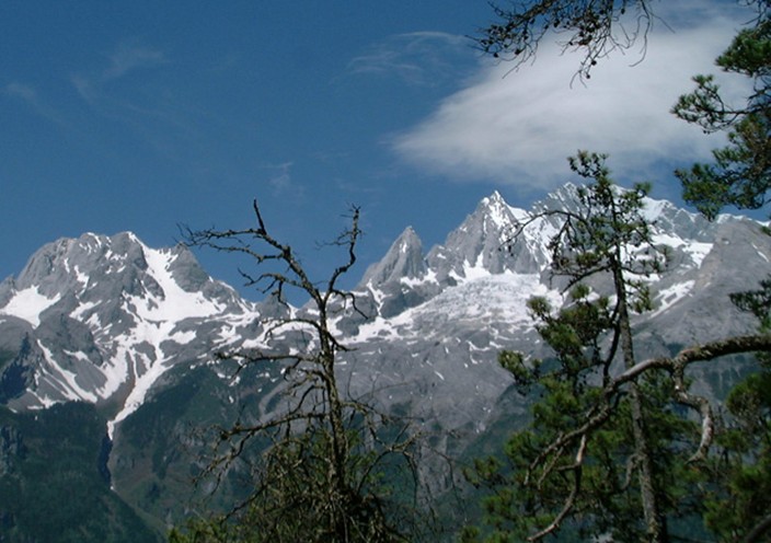 玉龍雪山位于玉龍納西族自治縣境內,是北半球最南的大雪山。南北長35公里,東西寬13公里,面積960平方公里,高山雪域風景位于海拔4000米以上,以險、奇、美、秀著稱于世,隨著時令和陰晴的變化,有時云蒸霞蔚、玉龍時隱時現;有時碧空如水,群峰晶瑩耀眼;有時云帶束腰,云中雪峰皎潔,云下崗巒碧翠;有時霞光輝映,雪峰如披紅紗,嬌艷無比。整個玉龍雪山集亞熱帶、溫帶及寒帶的各種自然景觀于一身,構成獨特的“陽春白雪”主體景觀。雨雪新晴之后,雪格外的白,松格外的綠,掩映生態,移步換形,很像是白雪和綠松在捉迷藏,蔚為奇觀。