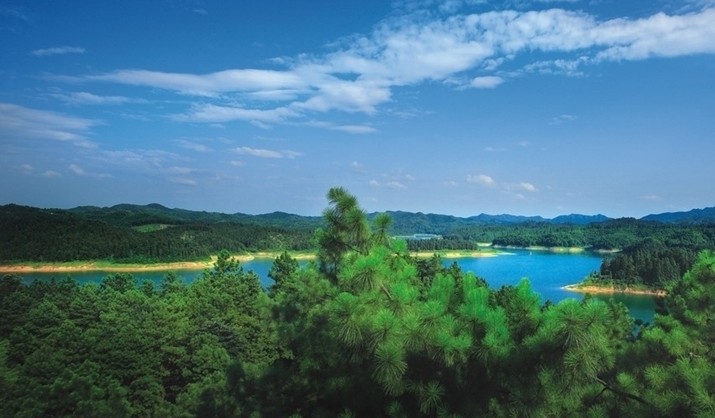 水涌青螺——暮春時節,五溪湖水位上升。湖中的小島仿若青螺,錯落有致地排列在水面,若沉若浮,似動非動,蕩漾于粼粼碧波之中,展現在朝曦夕陽之下,若乘小舟蕩漾其中,則詩情畫意,妙趣無窮。