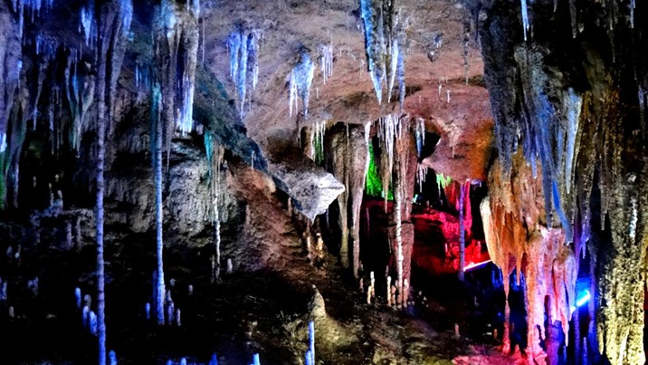 洞府云天絕世景觀,其上下高達80米的層樓空間結構,規模宏大、布局天成。它上下映照,水路遙相呼應,各種石鐘乳在五顏六色的燈光照耀下層次清晰,令人嘆為觀止。